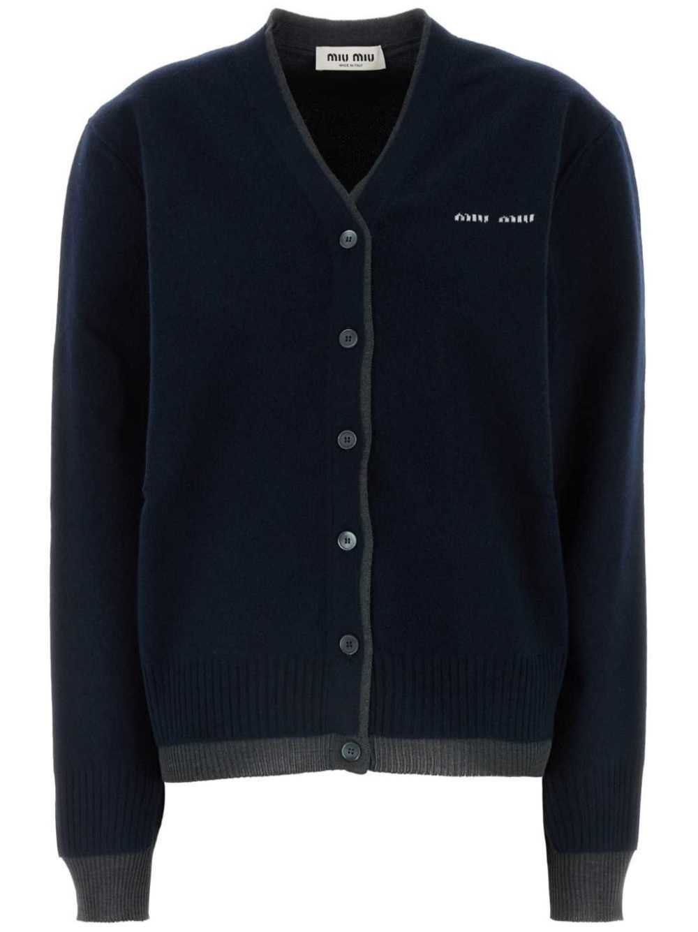 v-neck cashmere cardigan Highlights - Navy blue - Cashmere - Button fastening - V-neck - Long sleeves - Embroidered logo at the chest - Ribbed cuffs and hem Composition Outer: Cashmere 100% Lining: Silk 100%