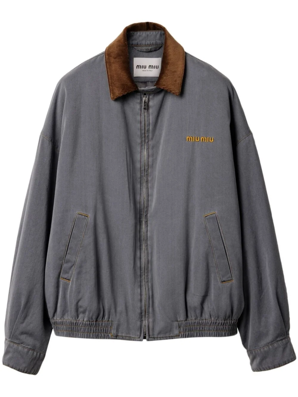 velvet-trim bomber jacket Highlights - Medium grey - Front zip fastening - Two side welt pockets - Buttoned cuffs - Elasticated cuffs Composition Lining: Viscose 100%, Cotton 100%, Recycled Polyester 100% Outer: Cotton 100%