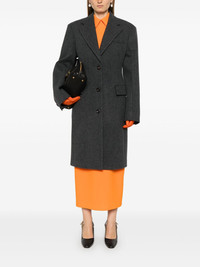 virgin-wool coat Highlights - Charcoal grey - Virgin wool - Melange effect - Felted finish - Front button fastening - Notched lapels - Shoulder pads - Long sleeves - Faux buttoned cuffs - Chest welt pocket - Dart detailing - Fitted waistline - Two side welt pockets - Two rear vents - Full lining - Mid-length Composition Lining: Viscose 100% Outer: Virgin Wool 100% SIZE & FIT Model measurements Height 5 ft 9 in(1.75 m) Bust/Chest 30.7 in(78 cm) Hips 35.03 in(89 cm) Waist 23.62 in(60 cm) FittingInformation Designed for a slim fit that sits just away from the body offering a close yet comfortable fit The vented hem offers movement at the rear Made from a midweight non-stretch fabric