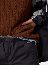 wide-leg bermuda shorts Highlights - Midnight blue - Elasticated waistband - Two side zip-fastening pockets - Logo patch to the side Composition Polyester 76%, Silk 24%