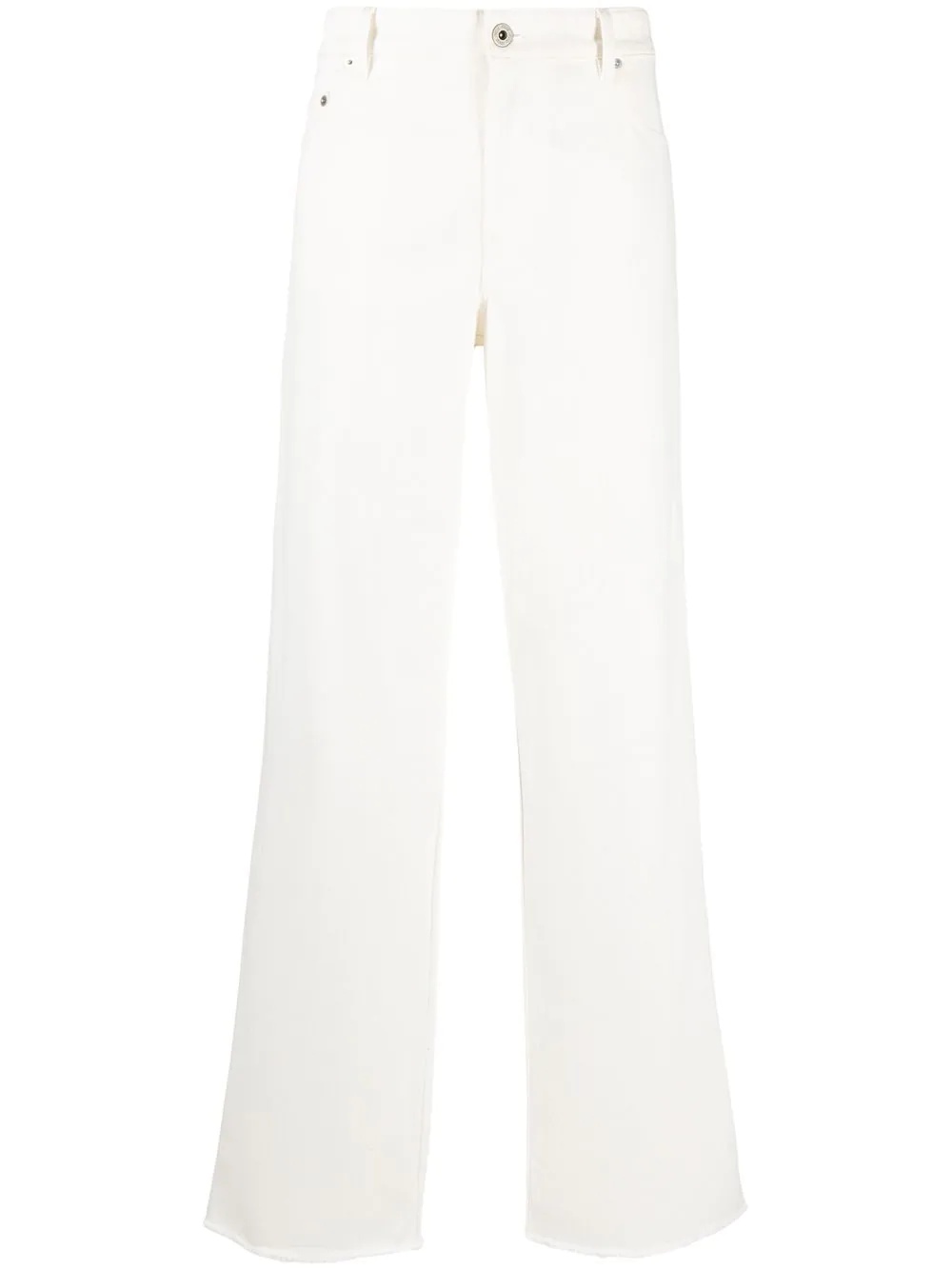 wide-leg jeans white cotton classic five pockets wide leg belt loops Composition Lining: Polyester 65%, Cotton 35% Outer: Cotton 100% SIZE & FIT Model measurements Height 5 ft 10 in(1.79 m) Bust/Chest 31.49 in(80 cm) Hips 35.03 in(89 cm) Waist 23.62 in(60 cm) FittingInformation This piece fits true to size. We recommend you get your regular size Designed to be fitted at the waist and hips, loose over the leg Made with a mid-weight non-stretch fabric Washing instructions Dry Clean Only