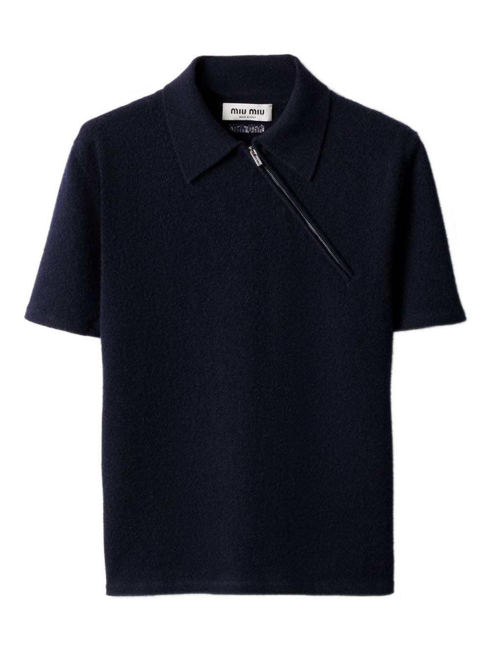 zip-front ribbed knit sweater Highlights - Navy blue - Cashmere - Ribbed knit collar - Short sleeves - Diagonal zip closure Composition Cashmere 100% Washing instructions Read Manufacturer Guidelines
