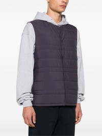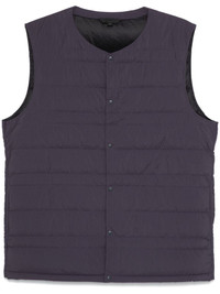 BT gilet Highlights - Navy blue - Down-feather filling - Padded design - Quilted - Front press-stud fastening - Collarless - Sleeveless - Two side slit pockets - Full lining - Straight hem Imported Composition Lining: Nylon 100%, Duck Down 90%, Feather 10% Outer: Nylon 100% SIZE & FIT Model measurements Height 6 ft 1 in(1.85 m) Bust/Chest 35.82 in(91 cm) Hips 37.79 in(96 cm) Waist 29.13 in(74 cm) FittingInformation Designed for a regular fit, allowing for a comfortably loose fit throughout the body Made from a quilted non-stretch fabric, giving it no natural elasticity