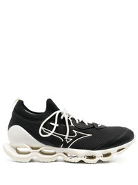 side logo-detail low-top sneakers Featuring a two-tone design, these low-top sneakers from Mizuno sit atop a striking cut-out rubber sole and are made recognisable by logo detailing to the side. Highlights - Jet black/cloud white - Two-tone design - Logo print to the side - Round toe - Front lace-up fastening - Branded insole - Flat rubber sole Imported Composition Sole: Rubber 100% Lining: Fabric 100% Outer: Polyester 100% SIZE & FIT Measurement HEEL 1.57 in(4 cm) Sole height 0.98 in(2.5 cm)