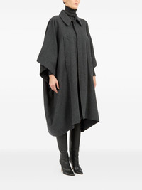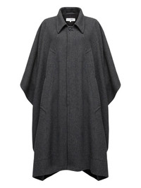 asymmetric cape Highlights - Charcoal grey - Button fastening - Pointed collar - Side pockets - Asymmetric hem Made in Italy Composition Wool 68%, Polyamide 27%, other fibers 5%