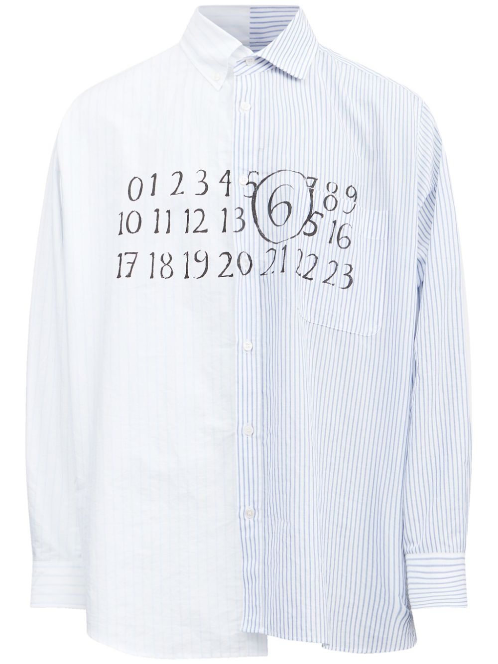 asymmetric cotton shirt Highlights - Blue/white - Cotton - Asymmetric design - Vertical stripe pattern - Front button fastening - Classic collar - Long sleeves - Buttoned cuffs - Chest patch pocket Made in Italy Composition Cotton 100%