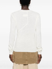 asymmetric virgin wool blend jumper Highlights - Chalk white - Virgin wool blend - Panelled design - Asymmetric design - Crew neck - Long sleeves Imported Composition Acrylic 50%, Virgin Wool 50% SIZE & FIT Model measurements Height 5 ft 10 in(1.77 m) Bust/Chest 32.28 in(82 cm) Hips 35.03 in(89 cm) Waist 25.19 in(64 cm) FittingInformation Designed for a slim fit that sits just away from the body offering a close yet comfortable fit The ribbed hem offers a close, comfortable fit Made with a lightweight knit, this piece offers some stretch This piece fits true to size – take your usual size