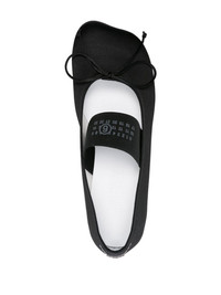 Atomic satin ballerina shoes Highlights - Black - Satin finish - Signature numbers motif - Bow detailing - Elasticated strap - Square toe - Branded leather insole - Leather outsole - Low stacked heel Imported Composition Lining: Fabric 100%, Calf Leather 100% Outer: Fabric 100% Sole: Calf Leather 100%, Rubber 100%
