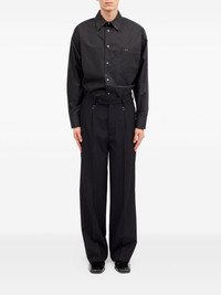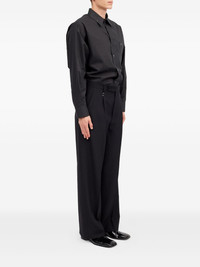 belt-loop trousers Highlights - Black - Belt loops - Button fastening - Straight leg - Side seam pockets - Rear welt pockets Made in Italy Composition Polyester 55%, Virgin Wool 45% Washing instructions Read Manufacturer Guidelines