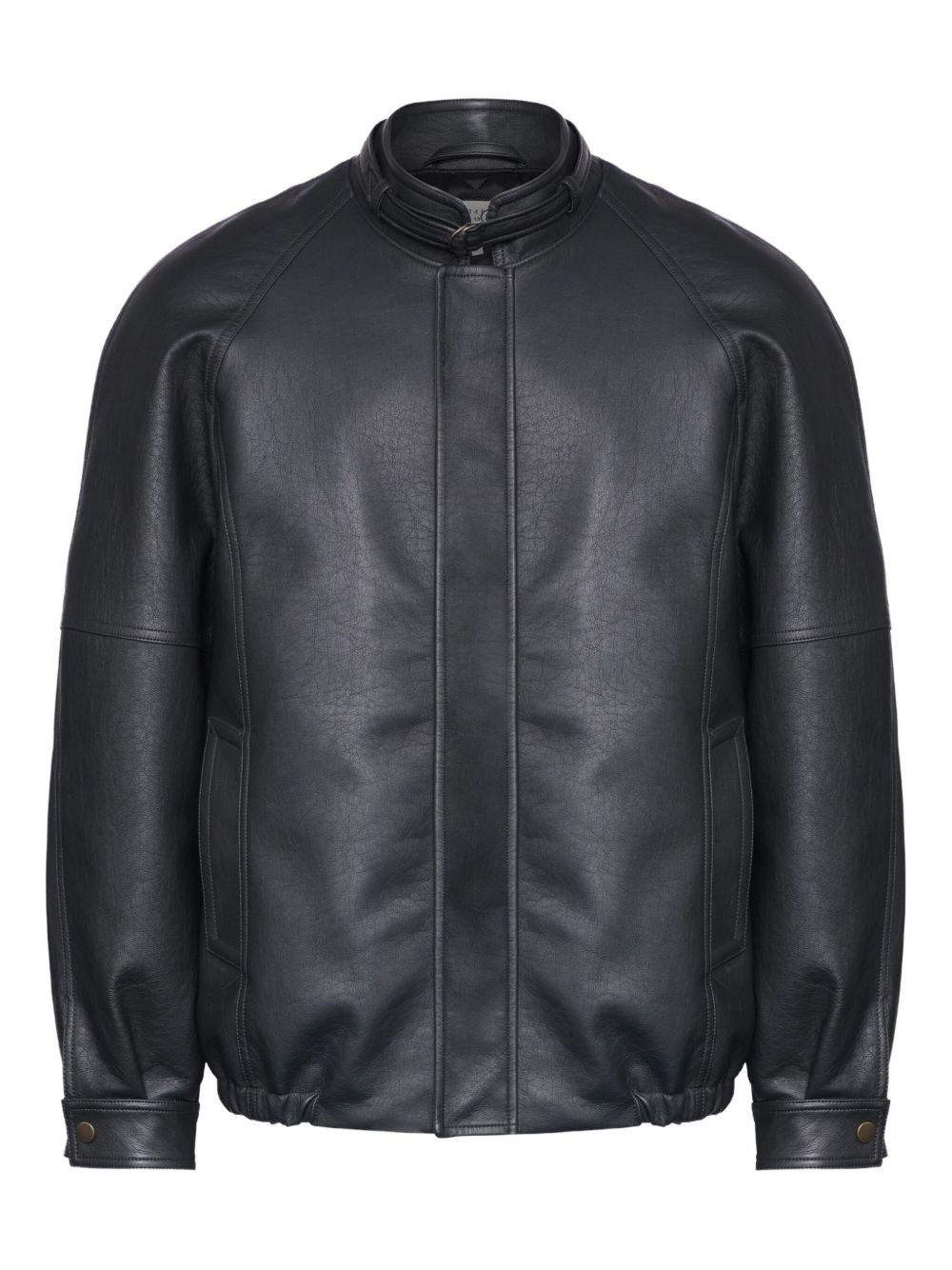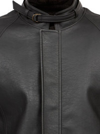 belted raglan-sleeve jacket Highlights - Black - Raglan sleeves - Belted waist - Mock neck - Snap-button fastening - Textured leather effect Made in Italy Composition Polyester 100% Washing instructions Read Manufacturer Guidelines