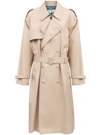 belted trench coat Highlights - Beige - Cotton - Double-breasted button fastening - Notched collar - Epaulettes - Belted waist - Two side welt pockets - Long sleeves - Belted cuffs - Storm flap - American rear vent - Straight hem Imported Composition Cotton 100%