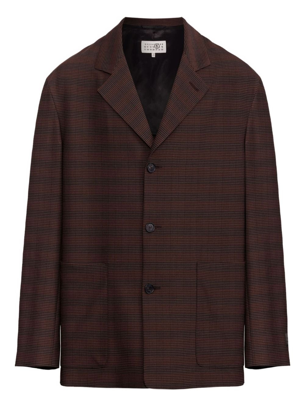 checked blazer Highlights - Brown - Check pattern - Notched lapels - Three-button fastening - Two front pockets Made in Italy Composition Polyester 53%, Virgin Wool 43%, Spandex/Elastane 4%