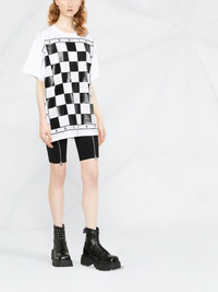 checked short-sleeve T-shirt cloud white/black cotton check print logo print to the front round neck short sleeves straight hem Made in Italy Composition Cotton 100% SIZE & FIT Model measurements Height 5 ft 10 in(1.78 m) Bust/Chest 31.49 in(80 cm) Hips 35.43 in(90 cm) Waist 24.4 in(62 cm) FittingInformation This piece fits true to size. We recommend you get your regular size Cut for a loose fit Made with a mid-weight fabric Washing instructions Hand Wash