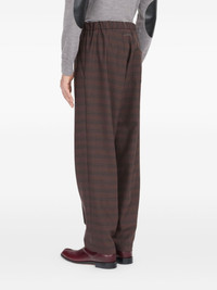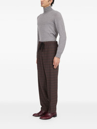 checked trousers Highlights - Brown - Checked pattern - Elasticated waistband - Drawstring fastening Made in Italy Composition Polyester 53%, Virgin Wool 43%, Spandex/Elastane 4% Washing instructions Read Manufacturer Guidelines