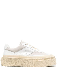 chunky flatform sneakers Highlights - White - Beige - Leather - Panelled design - Logo-debossed tongue - Perforated detailing - Round toe - Drawstring fastening - Chunky rubber sole - Flatform sole Made in Italy Composition Leather 100% SIZE & FIT FittingInformation This piece fits large – take one size down