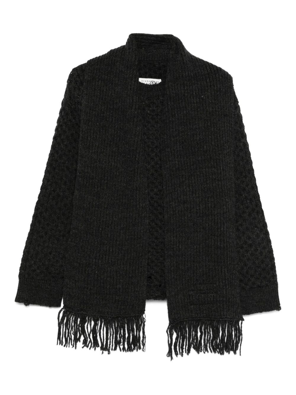 chunky-knit sweater Highlights - Grey - Chunky knit - Long sleeves - Fringed hem - Attached scar Made in Italy Composition Virgin Wool 50%, Acrylic 50% SIZE & FIT Model measurements Height 5 ft 9 in(1.75 m) Bust/Chest 34.64 in(88 cm) Hips 36.61 in(93 cm) Waist 26.37 in(67 cm) Washing instructions Dry Clean Only