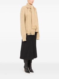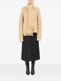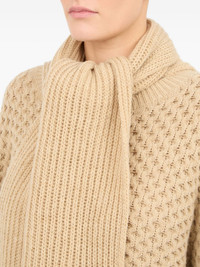 chunky-knit sweater Highlights - Beige - Quilted knit design - Attached scarf - Fringe detailing - Ribbed cuffs Made in Italy Composition Virgin Wool 50%, Acrylic 50%