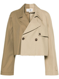 colour-block cropped jacket Highlights - Beige/taupe - Cotton - Twill weave - Colour-block panelled design - Wide notch lapels - Double-breasted button fastening - Long sleeves - Belted cuffs - Cropped frayed hem Made in Italy Composition Cotton 100% SIZE & FIT Model measurements Height 5 ft 11 in(1.8 m) Bust/Chest 34.25 in(87 cm) Hips 35.82 in(91 cm) Waist 24.8 in(63 cm) FittingInformation Designed for a relaxed fit, this piece allows for comfort and movement when worn Made from a midweight non-stretch fabric This piece fits true to size – take your usual size