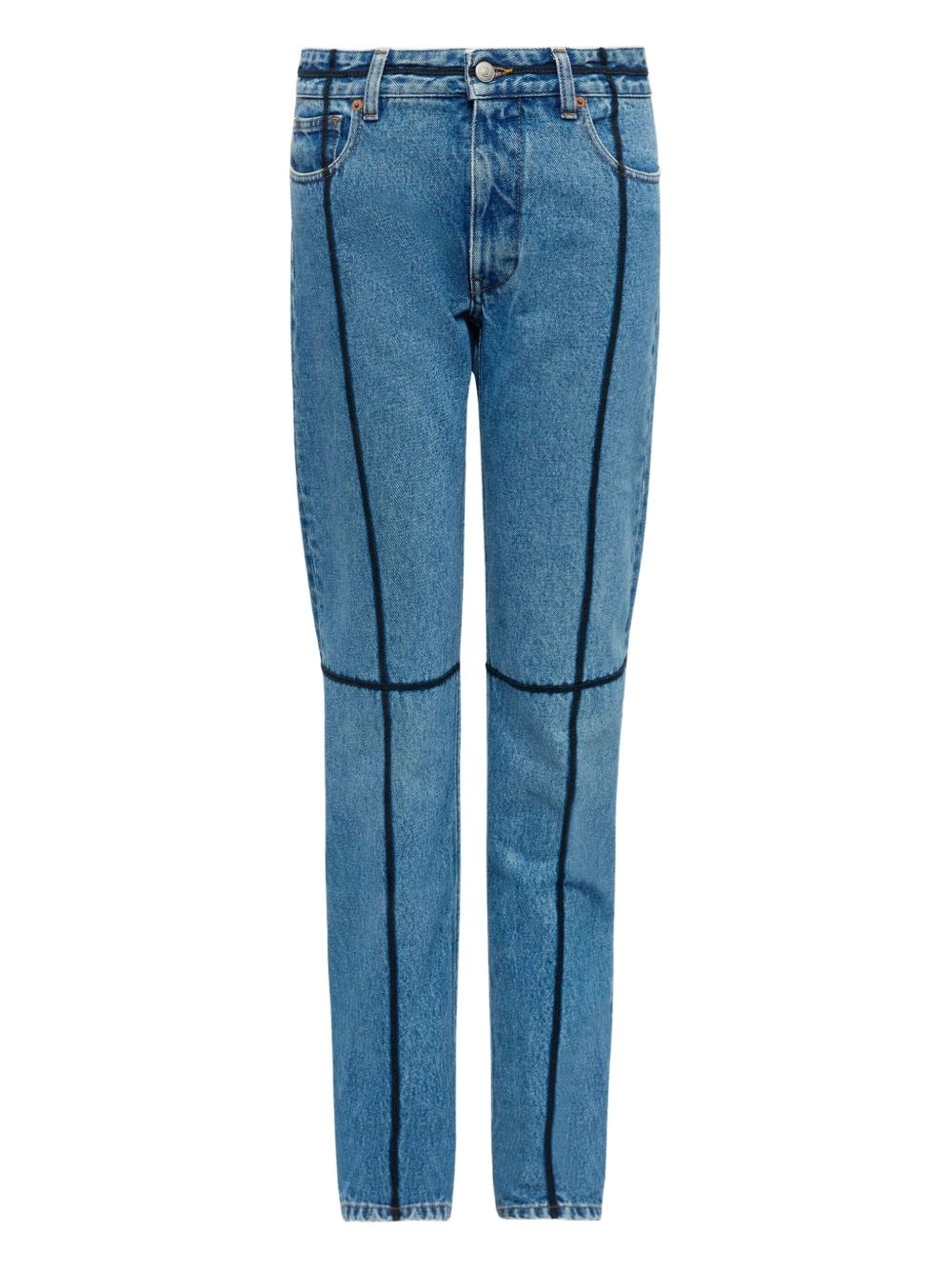 contrast-stitch jeans Highlights - Blue - Contrast stitching detailing - Five-pocket design - Belt loops - Zip fly and button closure Made in Italy Composition Cotton 100% Washing instructions Read Manufacturer Guidelines