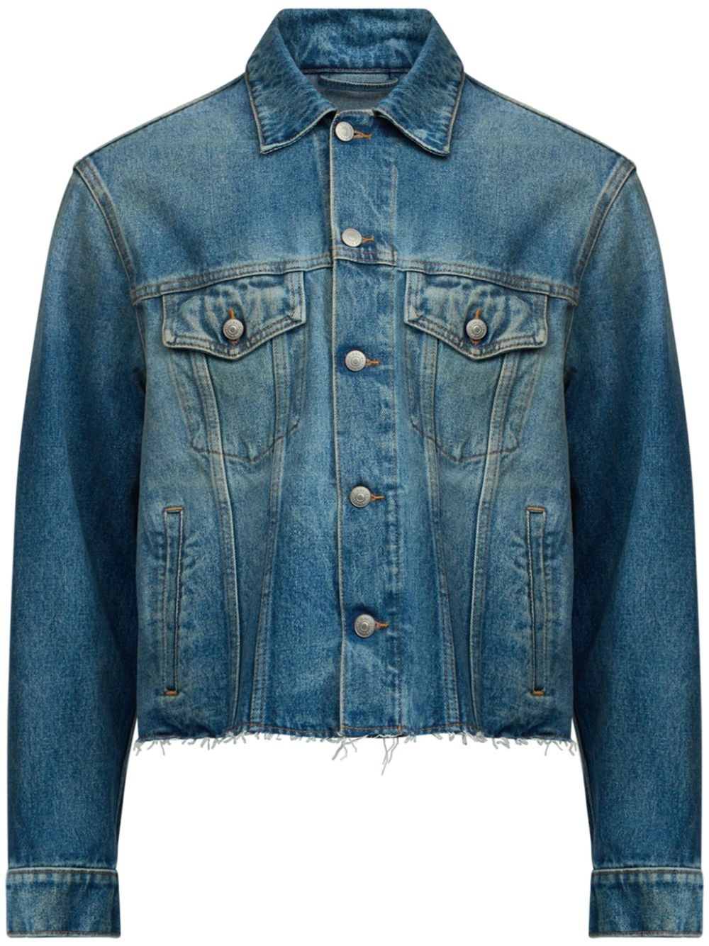 cotton denim jacket Highlights - Powder blue - Cotton - Washed denim - Front button fastening - Spread collar - Chest flap pockets - Two side slit pockets - Long sleeves - Buttoned-cuff sleeves - Straight hem Made in Italy Composition Cotton 100%