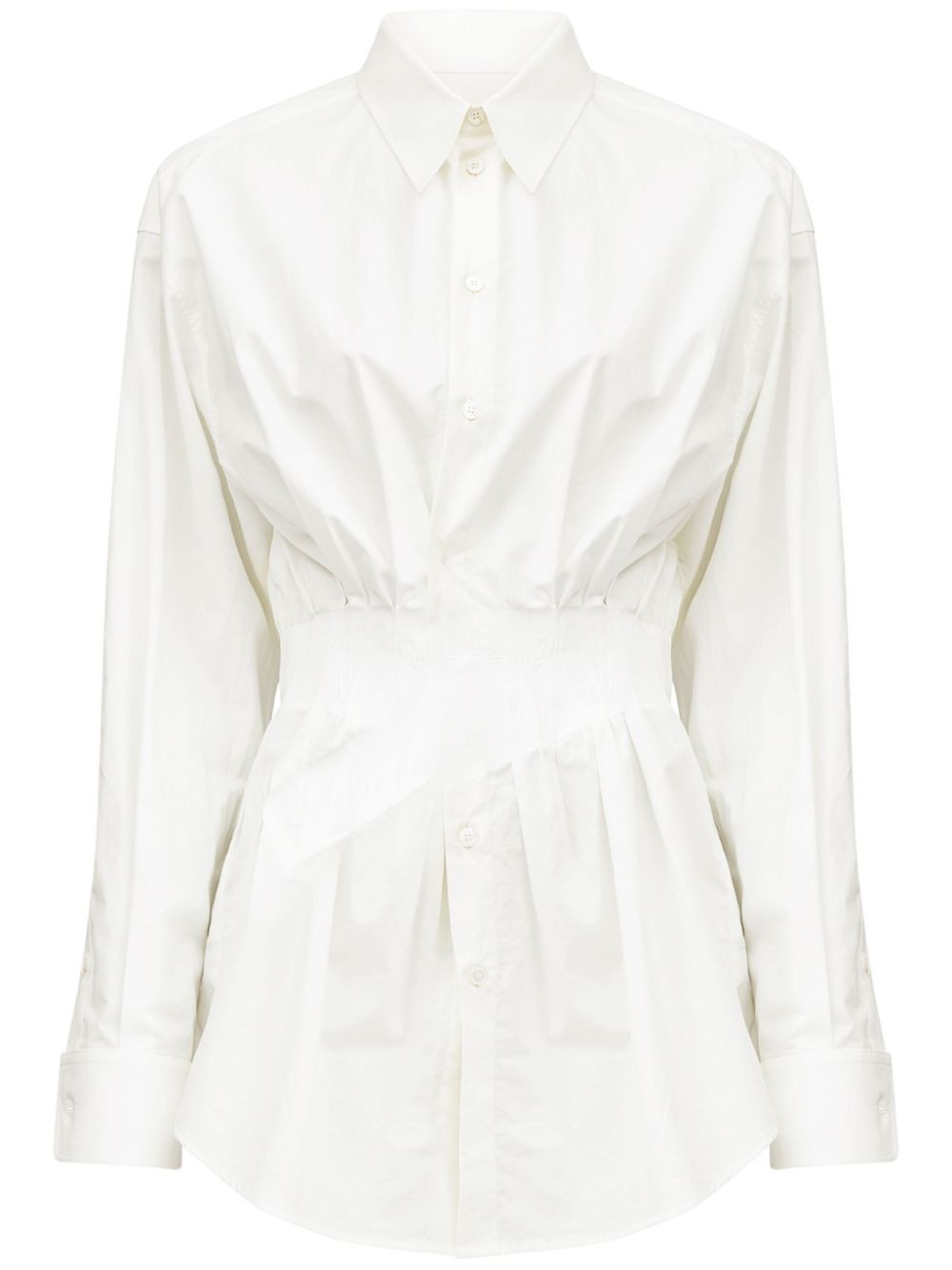 cotton shirt Highlights - White - Cotton - Poplin texture - Front button fastening - Straight-point collar - Drop shoulder - Long sleeves - Buttoned cuffs - Tied waist - Curved hem Made in Italy Composition Cotton 100% SIZE & FIT Measurement SLEEVE LENGTH 23.62 in(60 cm) LENGTH 31.49 in(80 cm) WAIST 28.34 in(72 cm) Shoulder Width 20.86 in(53 cm)