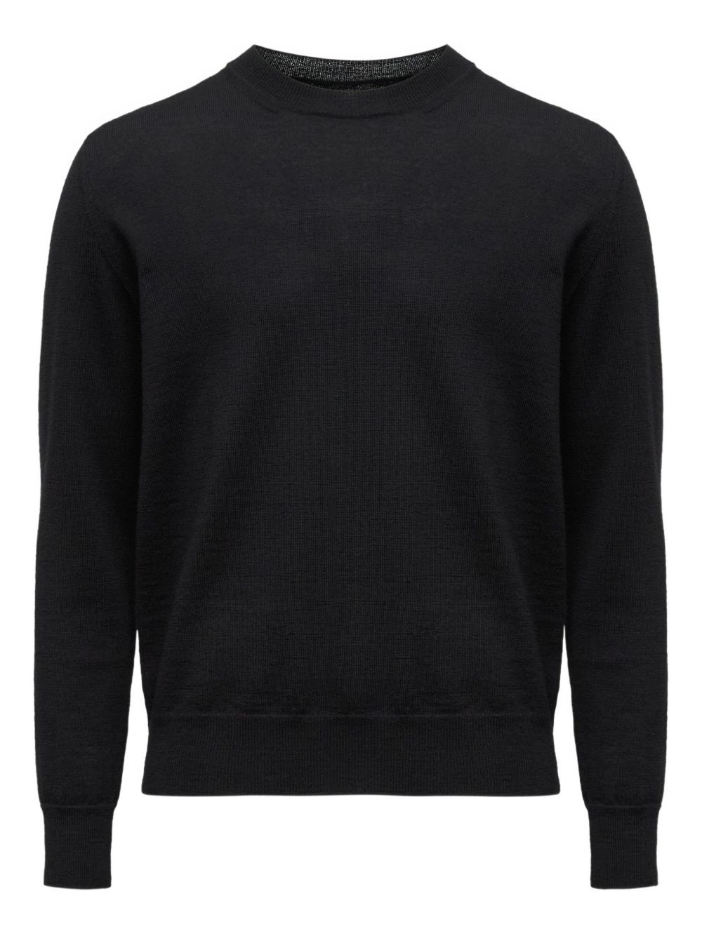 crew-neck sweater Highlights - Black - Crew neck - Long sleeves - Ribbed cuffs - Ribbed hem Imported Composition Virgin Wool 50%, Acrylic 50%