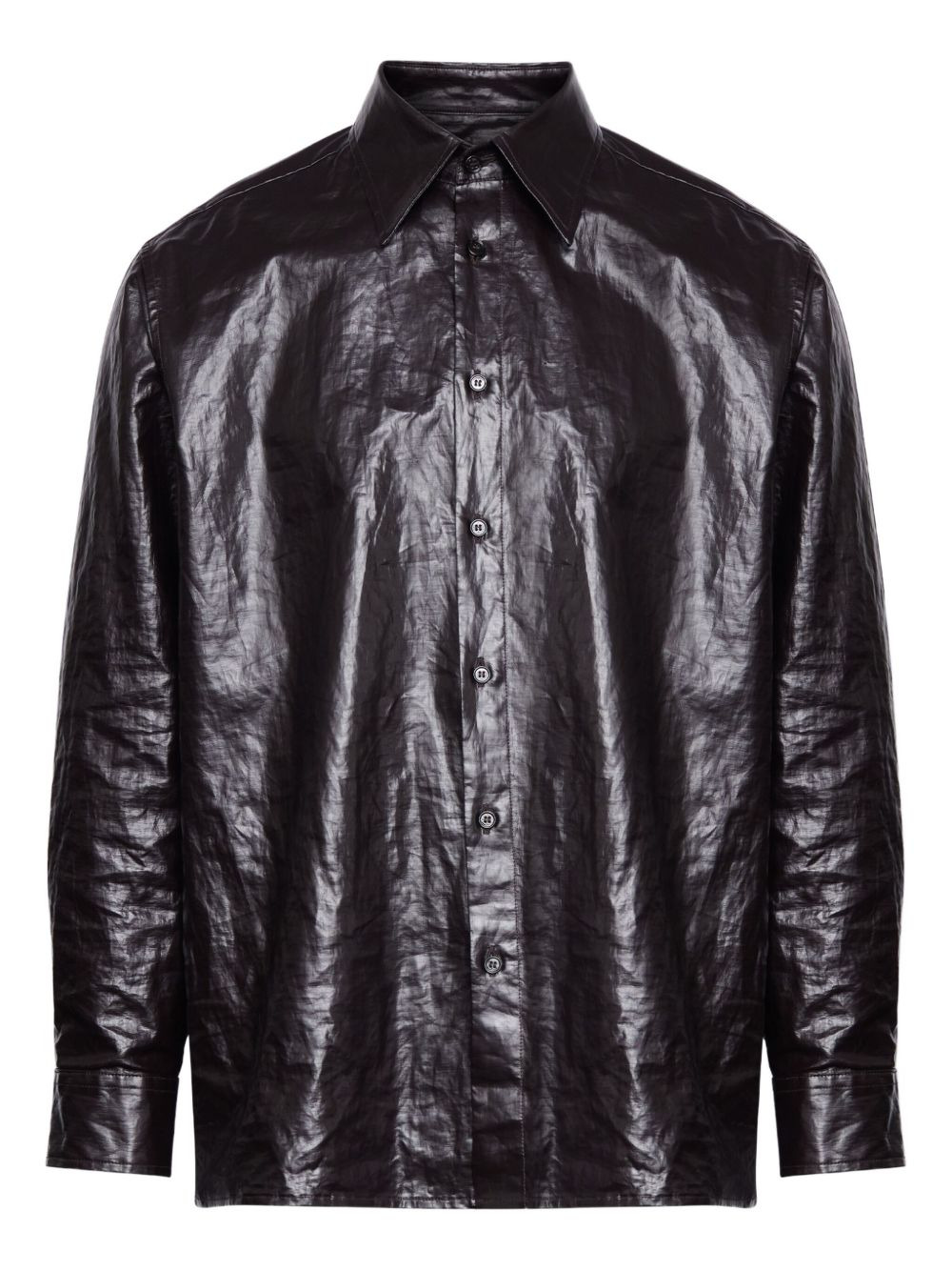 crinkled-finish button-up shirt Highlights - Brown - Crinkled finish - Button-up fastening - Straight-point collar - Long sleeves Made in Italy Composition Fabric 100% Washing instructions Read Manufacturer Guidelines