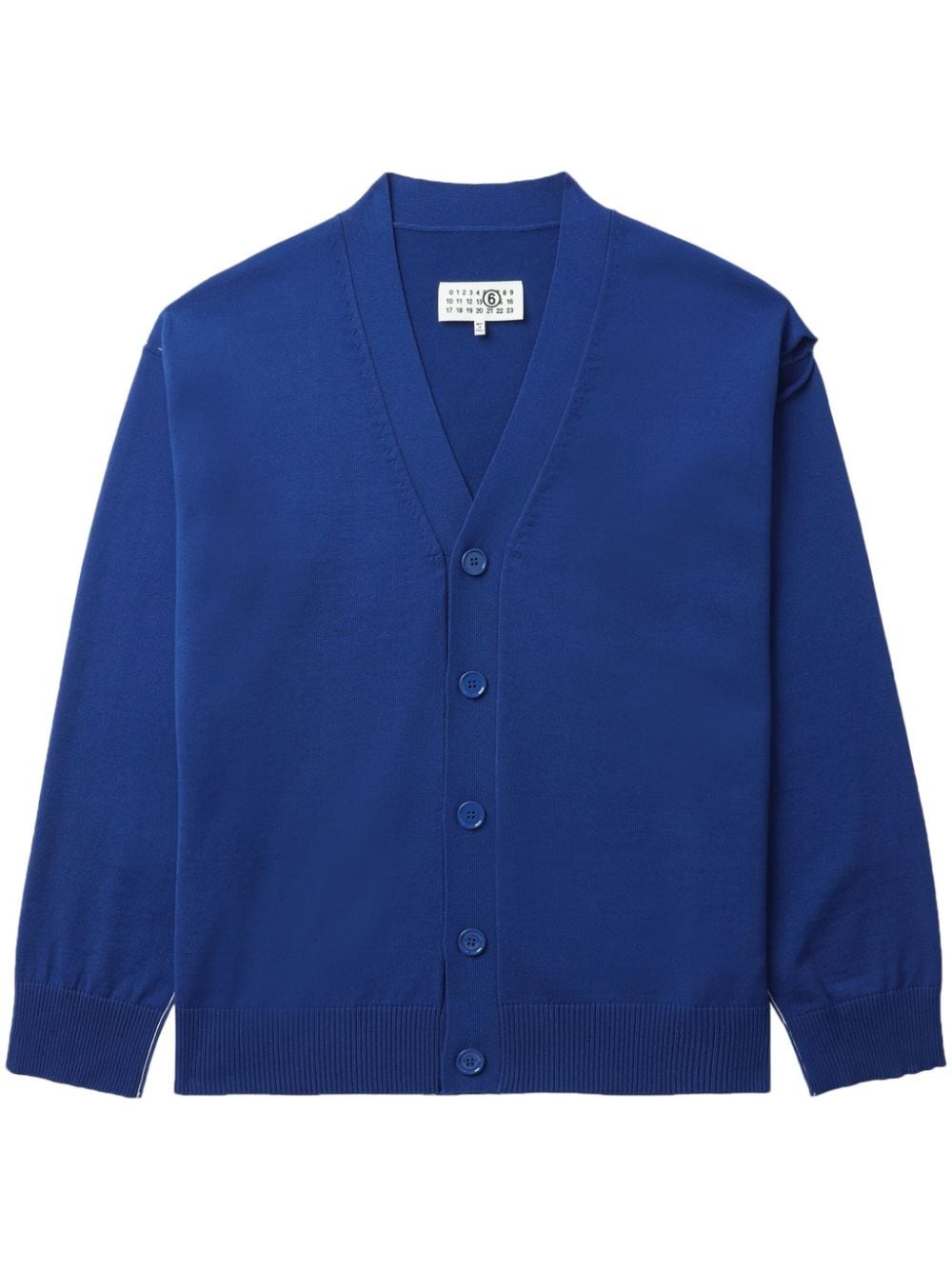 cut-out fine-knit cardigan Highlights - Cobalt blue - Fine knit - Ribbed-knit edge - Cut-out detailing - Contrast stitching - V-neck - Front button fastening - Drop shoulder - Long sleeves - Straight hem Made in Italy Composition Polyester 56%, Viscose 44% SIZE & FIT FittingInformation Designed for a relaxed fit, this piece allows for comfort and movement when worn The ribbed hem offers a close, comfortable fit Made with a midweight knit, this piece offers some stretch