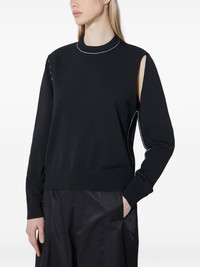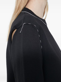 cut-out sweater Highlights - Black - Round neck - Cut-out detail - Long sleeves - Seam detailing - Ribbed hem Imported Composition Polyester 56%, Viscose 44% Washing instructions Read Manufacturer Guidelines
