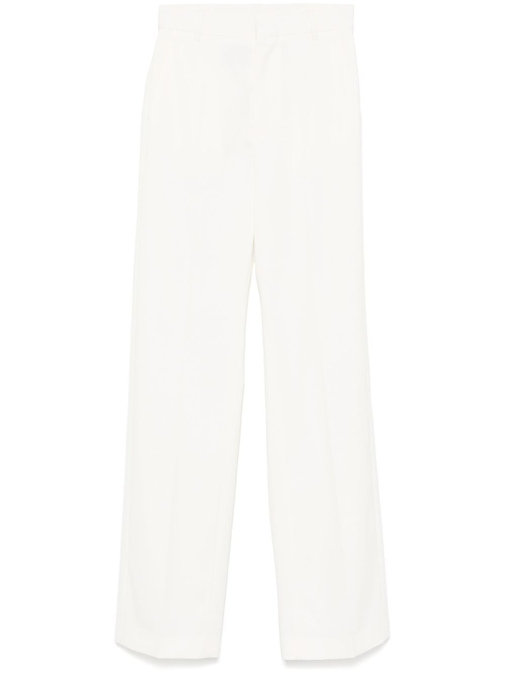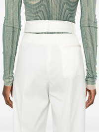 cut-out trousers Highlights - Light beige - Concealed front button, hook and zip fastening - Two side slash pockets - Rear jetted pocket - Belt loops Made in Italy Composition Lining: Viscose 100% Outer: Polyester 54%, Virgin Wool 44%, Elastane 2% SIZE & FIT Model measurements Height 5 ft 10 in(1.77 m) Bust/Chest 32.28 in(82 cm) Hips 35.03 in(89 cm) Waist 25.19 in(64 cm) FittingInformation Designed for a straight-leg fit, these trousers allow for a close fit at the waist and an unrestricted, comfortable fit over the leg Made from a midweight stretch fabric, this piece offers elasticity and flexibility when worn