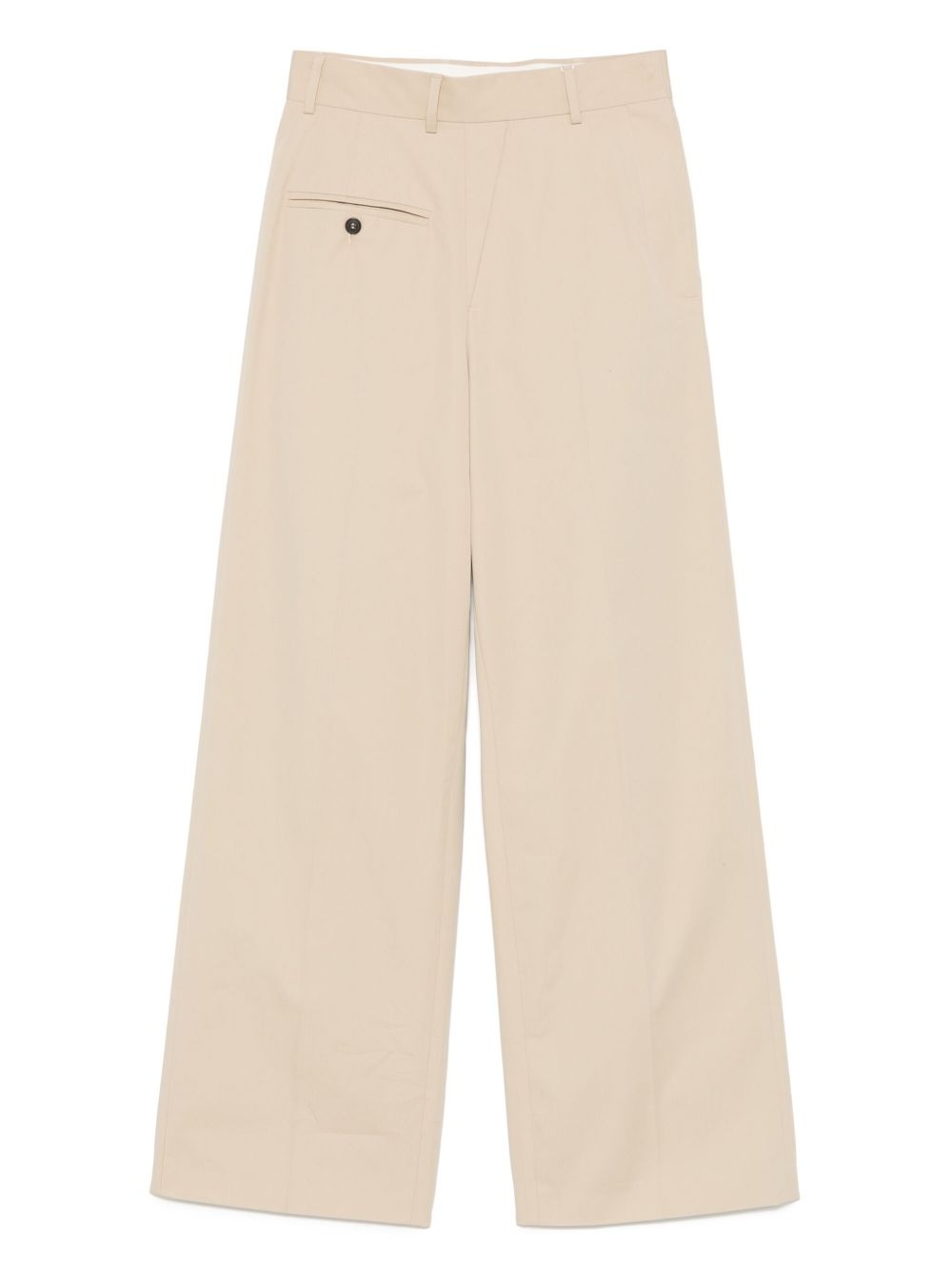 deconstructed trousers Highlights - Light beige - Concealed side hook and zip fastening - Belt loops - Jetted pocket - Rear button-fastening jetted pocket Made in Italy Composition Outer: Cotton 100% Lining: Viscose 100% SIZE & FIT Model measurements Height 5 ft 11 in(1.8 m) Bust/Chest 31.49 in(80 cm) Hips 36.61 in(93 cm) Waist 24.4 in(62 cm) FittingInformation Designed with a wide-leg cut, these trousers allow for a close fit at the waist and offer a loose and roomy fit over the leg Made from a midweight non-stretch fabric