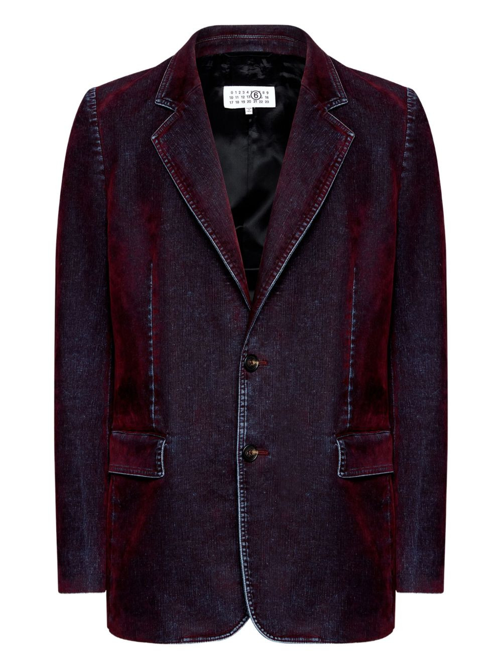 denim blazer Highlights - Plum purple - Notched lapels - Two-button fastening - Front flap pockets - Single vent at the back Made in Italy Composition Cotton 99%, Spandex/Elastane 1% Washing instructions Read Manufacturer Guidelines