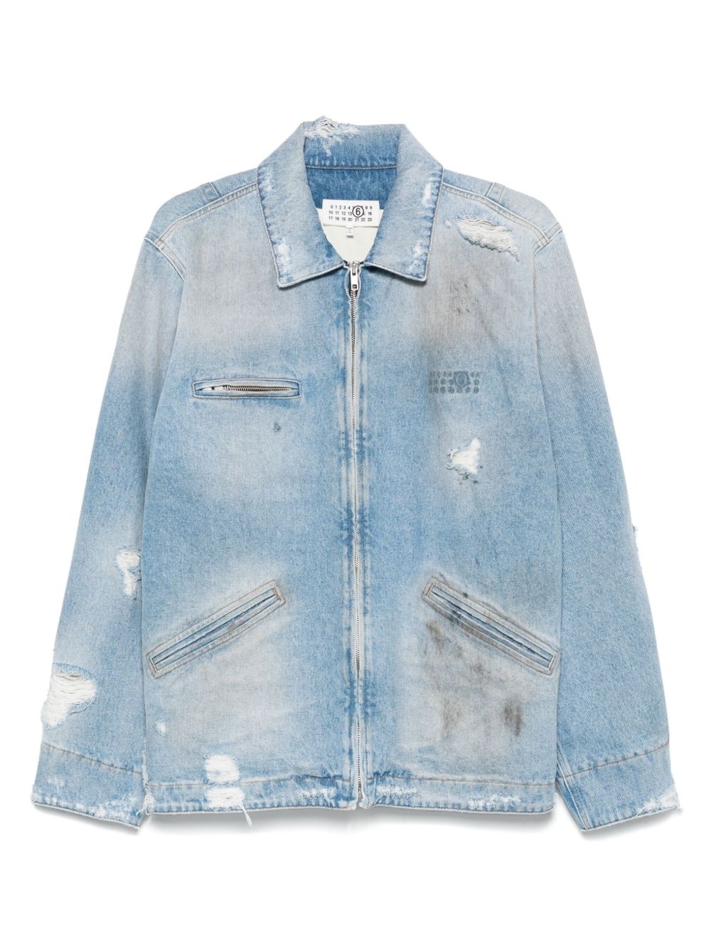 denim jacket Highlights - Sky blue - Front zip fastening - Zip-fastening chest pocket - Front two-way zip fastening - Distressed finish Made in Italy Composition Lining: Viscose 100%, Cotton 100% Outer: Cotton 100% SIZE & FIT Model measurements Height 6 ft 2 in(1.87 m) Bust/Chest 36.41 in(92.5 cm) Hips 37 in(94 cm) Waist 29.52 in(75 cm) FittingInformation Designed for a regular fit, allowing for a comfortably loose fit throughout the body Sturdy and hard-wearing, this denim piece offers no stretch