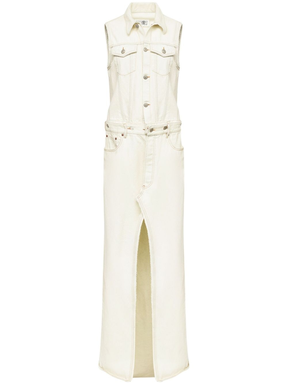 denim maxi dress Highlights - White - Front button fastening - Two chest flap pockets - Classic five pockets - Front slit Made in Italy Composition Cotton 100% Washing instructions Read Manufacturer Guidelines