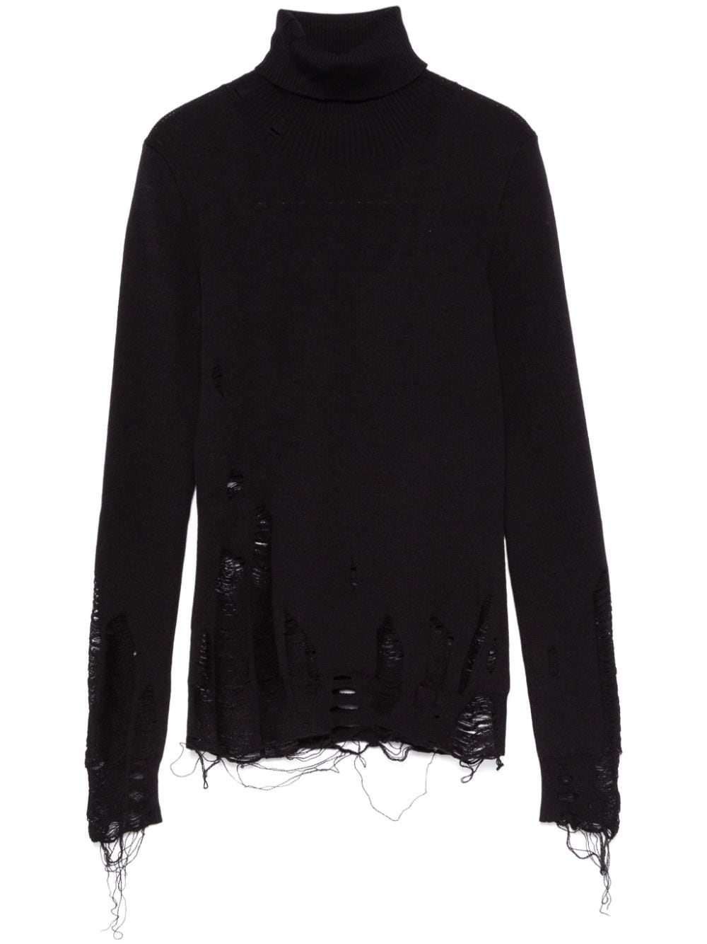 distressed-effect sweater Highlights - Black - Virgin wool blend - Fine knit - Distressed effect - Roll neck - Long sleeves - Signature single-stitch logo Imported Composition Virgin Wool 50%, Acrylic 50%