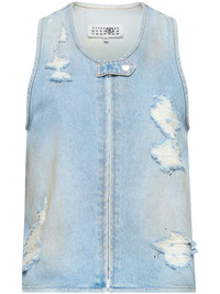 distressed effect waistcoat Highlights - Light blue - Concealed front fastening - Strap and press-stud fastening - Scoop neck - Distressed effect Made in Italy Composition Cotton 100%