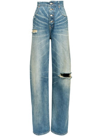 distressed straight jeans Highlights - Blue - Cotton - Washed denim - Distressed finish - Button fly fastening - Two front pouch pockets - Two rear patch pockets - Whiskering effect - Applique logo - Straight leg Made in Italy Composition Cotton 100%