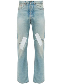 distressed straight jeans Highlights - Blue - Cotton - Washed denim - Distressed finish - Concealed fly and button fastening - Belt loops - Classic five pockets - Applique logo - Straight leg Made in Italy Composition Cotton 100%