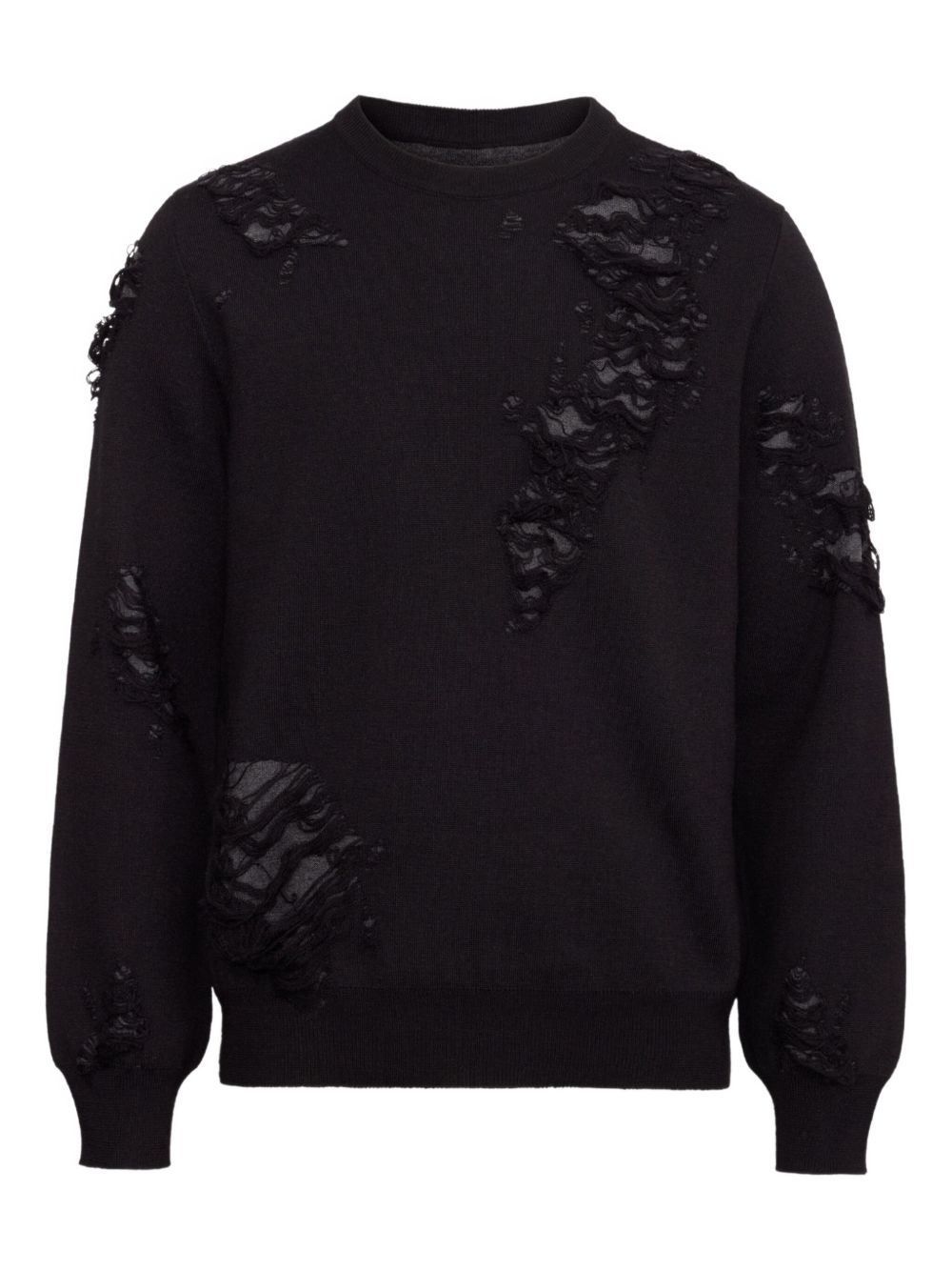 distressed sweater Highlights - Black - Textured distressed detailing - Crew neck - Long sleeves - Ribbed cuffs Made in Italy Composition Virgin Wool 50%, Acrylic 50% Washing instructions Read Manufacturer Guidelines