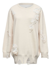 distressed sweatshirt Highlights - Cream - Distressed finish - Round neckline - Dropped shoulders - Raw hem Made in Italy Composition Acrylic 50%, Wool 48%, Polyamide 1%, Spandex/Elastane 1% Washing instructions Read Manufacturer Guidelines