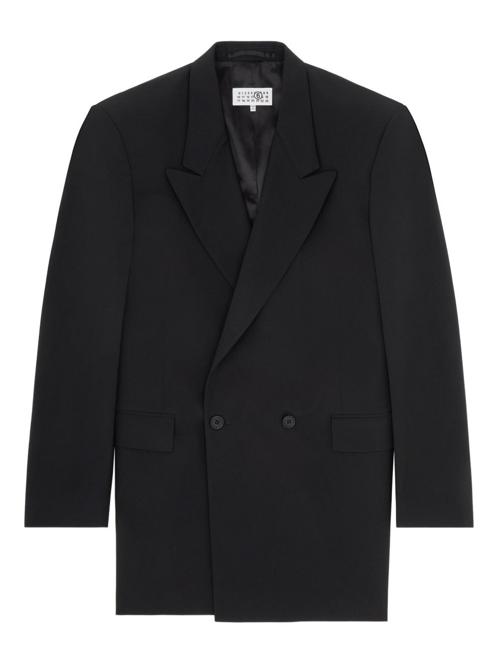 double-breasted coat Highlights - Black - Double-breasted - Button fastening - Padded shoulders - Peak lapels - Long sleeves - Straight hem Made in Italy Composition Virgin Wool 67%, Cotton 30%, Spandex/Elastane 3% Washing instructions Read Manufacturer Guidelines