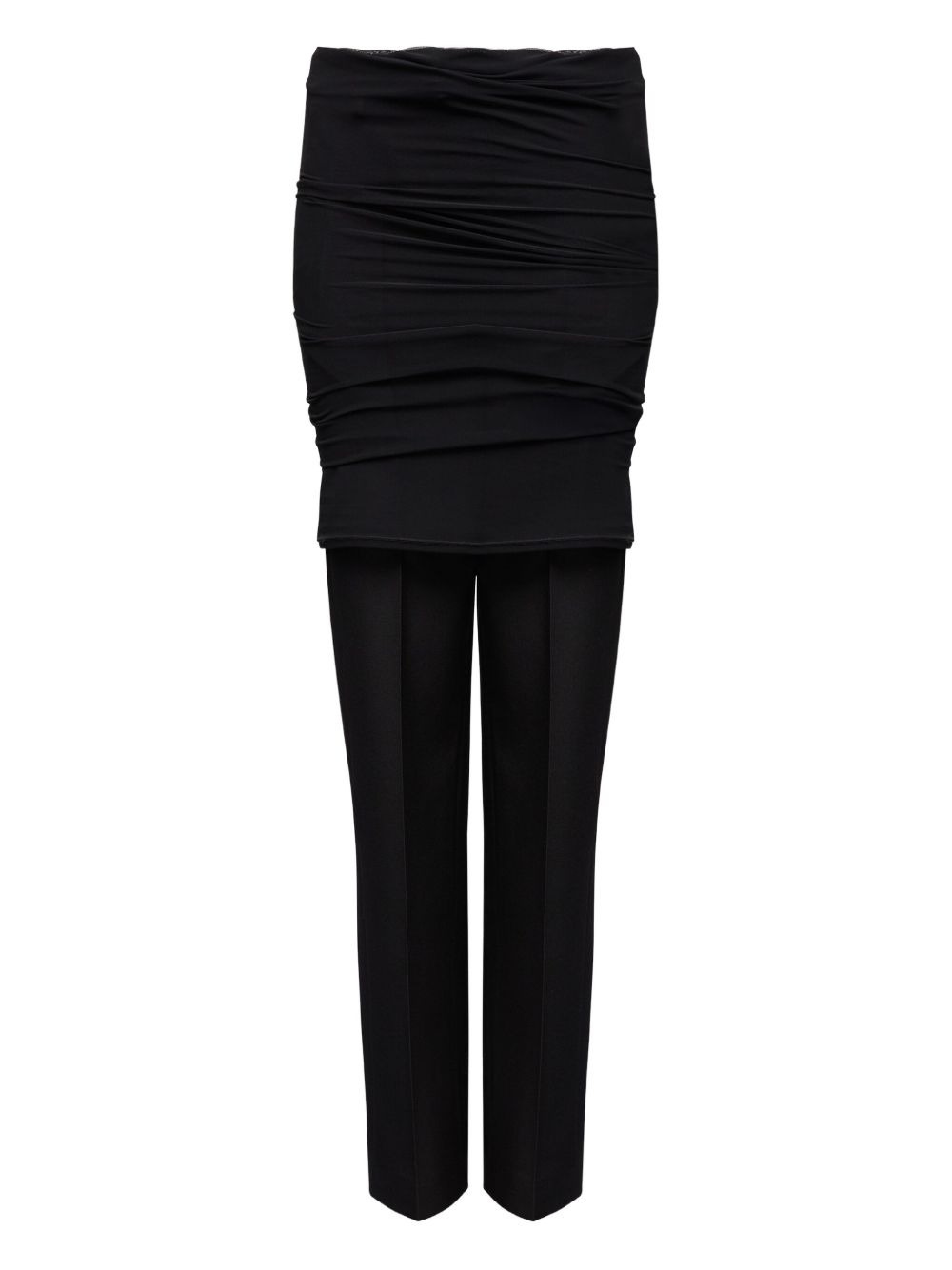 draped-layer trousers Highlights - Black - Draped top layer - High waist - Layered design - Jersey fabric Made in Italy Composition Polyester 55%, Virgin Wool 45% Washing instructions Read Manufacturer Guidelines