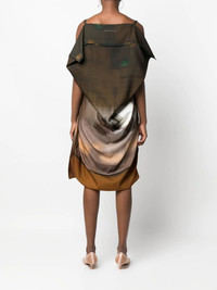 draped sleeveless dress brown abstract pattern print sleeveless draped design asymmetric hem Made in Italy Composition Polyester 100% SIZE & FIT Model measurements Height 5 ft 11 in(1.8 m) Bust/Chest 31.49 in(80 cm) Hips 36.61 in(93 cm) Waist 24.4 in(62 cm) FittingInformation This piece fits true to size. We recommend you get your regular size Cut for a loose fit Made with a mid-weight non-stretch fabric Washing instructions Hand Wash