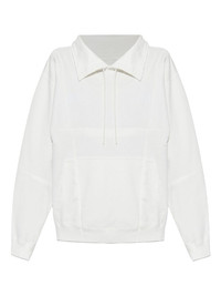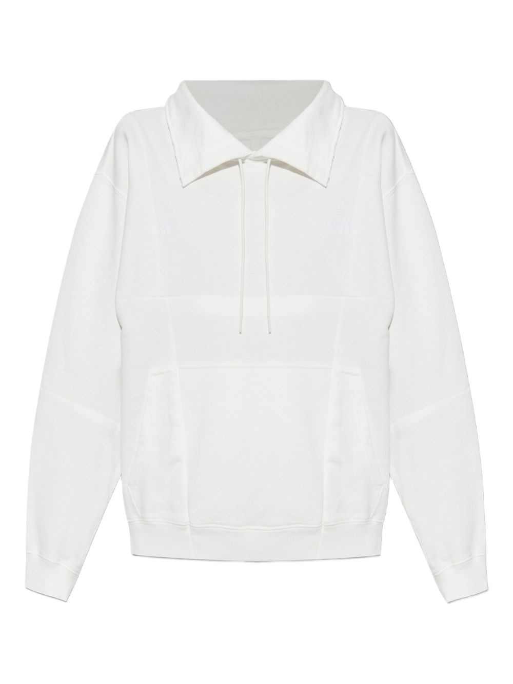 drawstring spread-collar sweatshirt Highlights - White - Spread collar - Adjustable drawstring - Front kangaroo pocket - Ribbed cuffs - Tonal logo embroidery Made in Italy Composition Cotton 100%