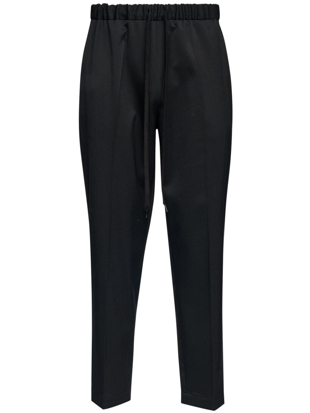 drawstring tailoring wool trousers Highlights - Black - Wool - Elasticated drawstring waistband - Signature single-stitch logo - Rear patch pocket - Tapered leg Imported Composition Polyester 100%, Wool 100%