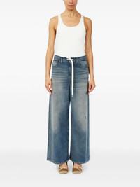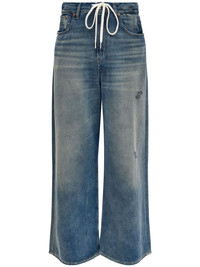 drawstring-waistband wide-leg jeans Highlights - Blue - Cotton - Washed denim - Drawstring waist - Concealed fly and button fastening - Belt loops - Classic five pockets - Whiskering effect - Applique logo - Wide leg Made in Italy Composition Cotton 100%