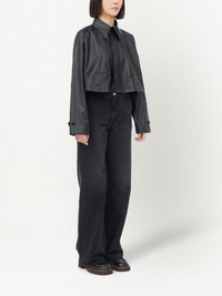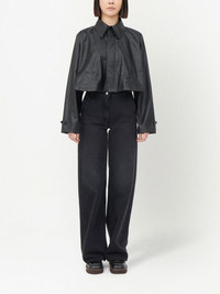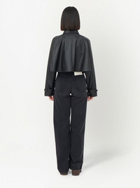 cropped trench coat Highlights - Black - Faux leather - Classic collar - Concealed front button fastening - Cropped - Flared design - Long sleeves - Buttoned cuffs - Straight hem Made in Italy Composition Coating: Polyurethane 100% Body: Viscose 100%