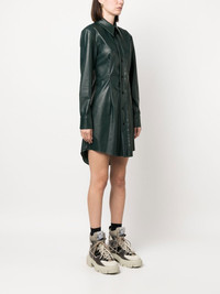 faux-leather shirt dress dark green faux leather front button fastening pointed flat collar long sleeves buttoned cuffs curved hem thigh-length Made in Italy Composition Viscose 100%, Polyurethane 100% SIZE & FIT Model measurements Height 5 ft 10 in(1.78 m) Bust/Chest 33.46 in(85 cm) Hips 36.22 in(92 cm) Waist 23.22 in(59 cm) FittingInformation This piece fits true to size. We recommend you get your regular size Designed for a close fit at the bust, waist and hips Made with a mid-weight non-stretch fabric Washing instructions Hand Wash