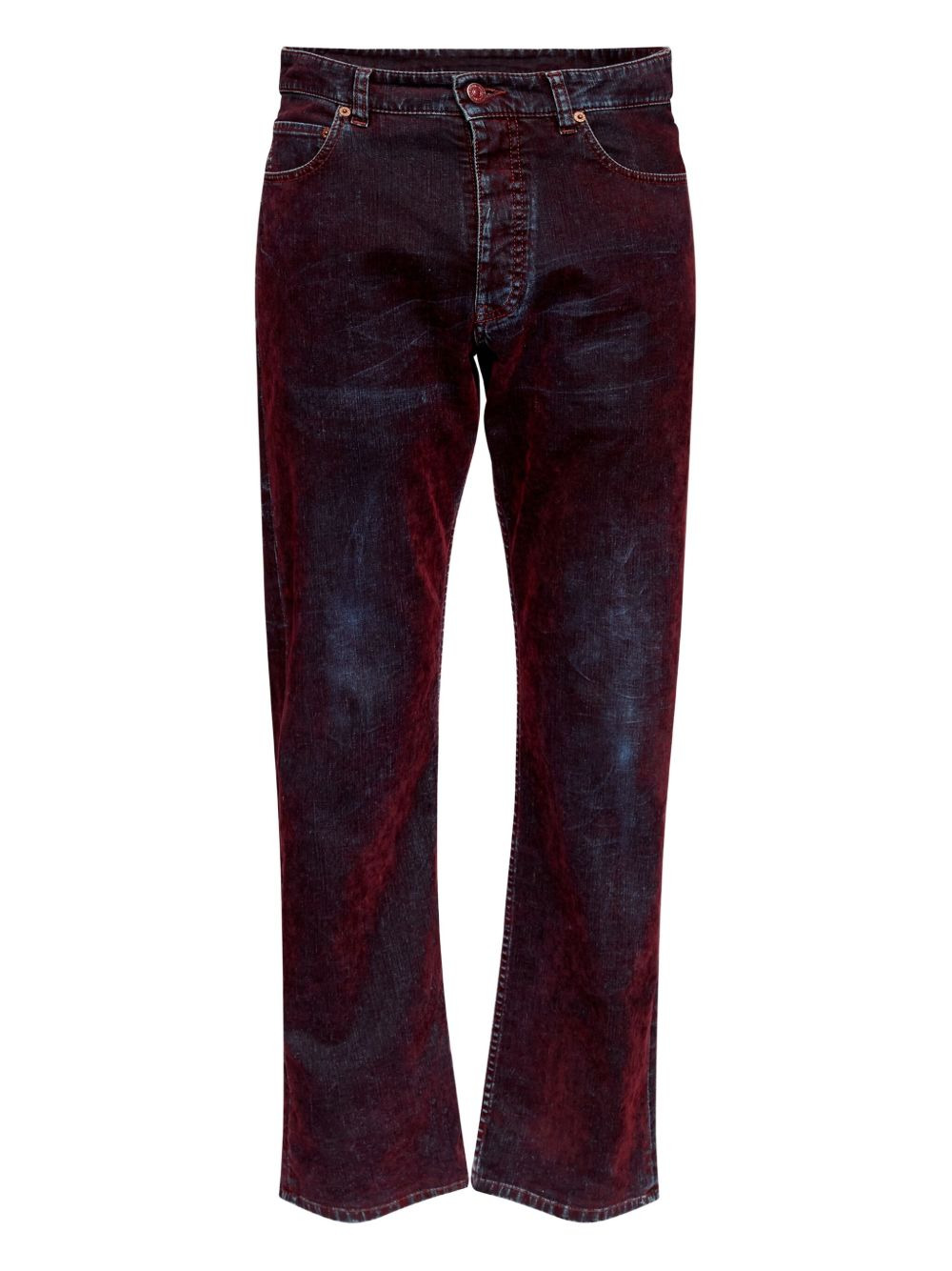 five-pocket faded jeans Highlights - Dark red - Faded finish - Five-pocket design - Button fly - Belt loops Made in Italy Composition Cotton 98%, Spandex/Elastane 2% Washing instructions Read Manufacturer Guidelines