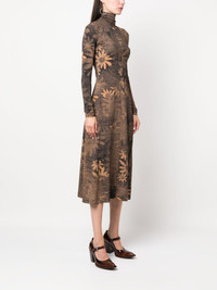 floral-print midi dress Highlights - Tobacco brown - Stretch-design - Faded effect - Floral print - High neck - Long sleeves - Flared skirt - Knee-length Made in Italy Composition Polyamide 73%, Spandex/Elastane 27% SIZE & FIT Model measurements Height 5 ft 10 in(1.78 m) Bust/Chest 33.46 in(85 cm) Hips 36.22 in(92 cm) Waist 23.22 in(59 cm) Measurement HIPS 37 in(94 cm) LENGTH 49.6 in(126 cm) WAIST 26.77 in(68 cm) Washing instructions Read Manufacturer Guidelines